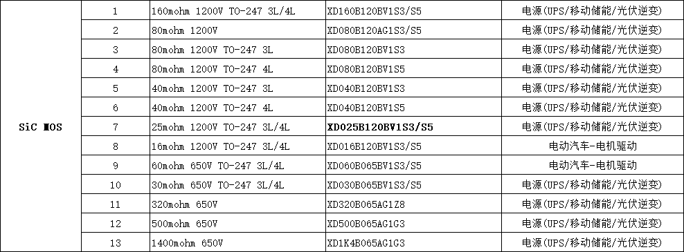XD025B120BV1S3/S5 25mohm 1200V TO-247 3L/4L 電源(UPS/移動儲能/光伏逆變)