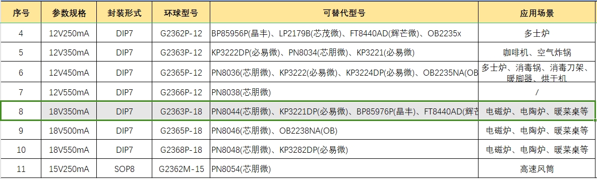 在電源管理領域,非隔離buck芯片扮演著至關重要的角色,尤其是在小家電市場中。G2363P-18作為一款高性能的非隔離buck芯片,以其18V350mA的輸出能力,廣泛應用于電磁爐等設備。然而,在實際應用中,工程師們可能會尋找替代型號以滿足特定的設計需求或成本考慮。以下是G2363P-18的一些可替代型號及其特點分析。
