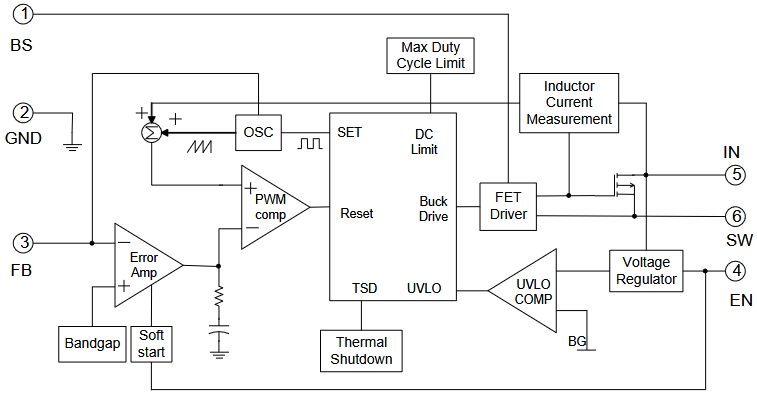 內置軟啟動和環路補償:簡化了外圍電路的設計,減少了應用所需的外圍器件。