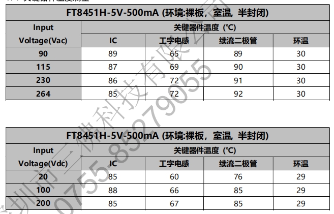 效率與電壓穩(wěn)定性:在不同輸入電壓下,F(xiàn)T8451H均能保持較高的效率和穩(wěn)定的輸出電壓。例如,在90Vac輸入時(shí),滿(mǎn)載效率為65%,輸出電壓穩(wěn)定在5V左右;在230Vac輸入時(shí),滿(mǎn)載效率同樣達(dá)到65%,輸出電壓也保持穩(wěn)定。