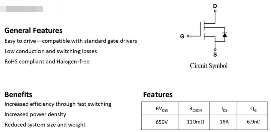 適配器的核心部件選用了氮化鎵 CE65H110DNDI 型號的功率器件。該器件具備 650V 的耐壓能力和 110mΩ 的導(dǎo)通電阻,能夠在高頻開關(guān)條件下保持較低的導(dǎo)通損耗和開關(guān)損耗。與傳統(tǒng)硅基 MOSFET 相比,氮化鎵器件的高頻特性使其在 LLC 諧振變換器中能夠?qū)崿F(xiàn)更高的工作頻率,從而減小了變壓器、電感等磁性元件的體積和重量,提高了電源的整體功率密度。同時,氮化鎵器件的高熱導(dǎo)率有助于在高功率輸出時保持穩(wěn)定的溫度性能,延長器件壽命。