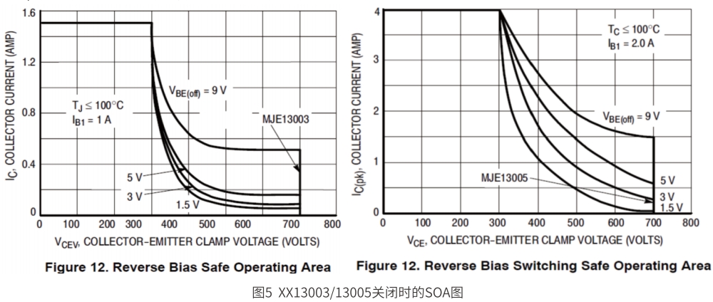 1.圖5為某款13003和13005反偏狀態(tài)下的SOA圖。
