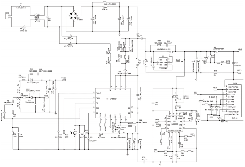 在這一背景下,芯茂微電子憑借其在電源管理芯片領(lǐng)域的深厚技術(shù)積累和創(chuàng)新能力,推出了合封氮化鎵LP88G24DCD的PD65W適配器參考設(shè)計(jì)。這一設(shè)計(jì)充分展現(xiàn)了GaN技術(shù)的優(yōu)勢,同時(shí)也體現(xiàn)了芯茂微電子在電源管理芯片設(shè)計(jì)上的先進(jìn)理念。