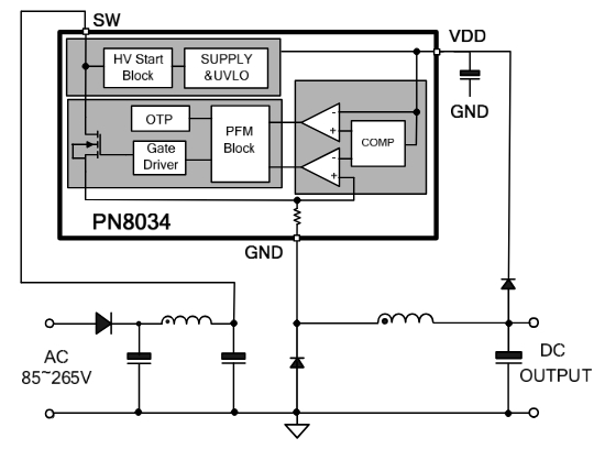 PN8034有哪些型號及典型功率介紹,小功率芯片的高性能選擇