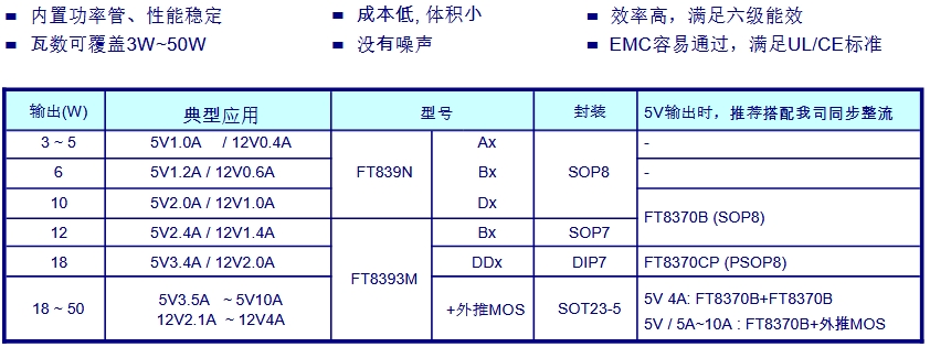 FT839xx/FT8393xx系列芯片是專為滿足DoE(美國能源部)和CoC(歐洲協(xié)調(diào)委員會)六級能效標(biāo)準(zhǔn)而設(shè)計的AC-DC恒壓恒流芯片。該系列芯片內(nèi)置功率管,具備性能穩(wěn)定、成本低、體積小、效率高等特點(diǎn),能夠覆蓋3W~50W的瓦數(shù)范圍,廣泛適用于各種電子設(shè)備的充電器和適配器設(shè)計。