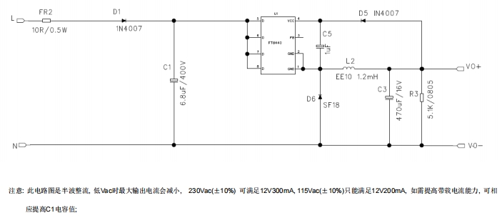 FT8440A是一款高性能、高精度、低成本的非隔離PWM功率開(kāi)關(guān),專(zhuān)為滿足現(xiàn)代電子設(shè)備對(duì)電源的嚴(yán)格要求而設(shè)計(jì)。該方案采用BUCK結(jié)構(gòu),具備全電壓輸入范圍(90Vac~264Vac,50/60Hz),能夠適應(yīng)不同地區(qū)的電網(wǎng)電壓波動(dòng),確保設(shè)備在全球范圍內(nèi)的穩(wěn)定運(yùn)行。