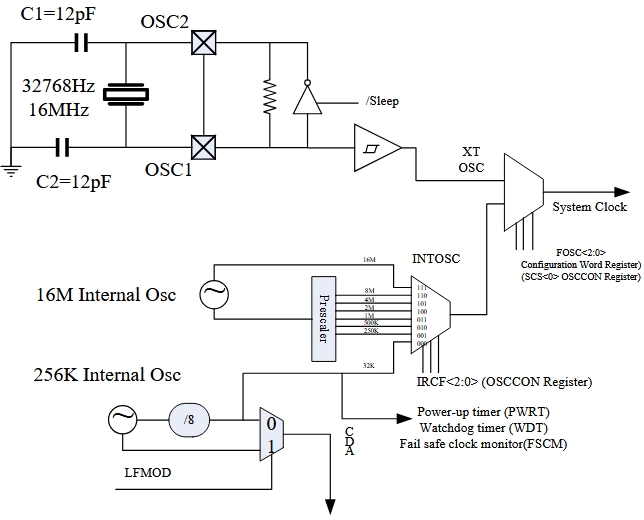 該微控制器支持多種中斷源,包括外部中斷、定時器中斷、ADC中斷、比較器中斷等。中斷控制寄存器(INTCON)和外圍中斷請求寄存器(PIR1/PIR2)記錄了中斷標志位,而對應的中斷使能寄存器(PIE1/PIE2)則控制中斷的使能。這種靈活的中斷處理機制使得系統能夠快速響應各種事件,提高了系統的實時性和可靠性。此外,中斷返回指令(RETI)在退出中斷函數時自動設置全局中斷使能位(GIE),重新使能未屏蔽的中斷,簡化了中斷處理流程。