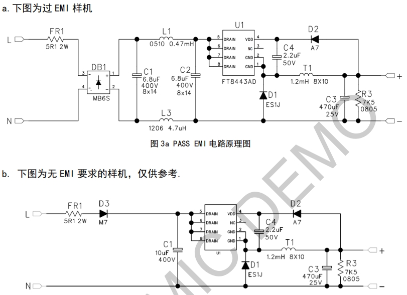 FT8443AD內(nèi)置650V高壓MOS,使得IC在工作過程中溫度較低,進一步提升了電源的可靠性。同時,該方案還具備過壓、欠壓、過溫、過流以及輸出短路保護等多種保護功能,全方位保障電源的安全運行,延長電源的使用壽命。