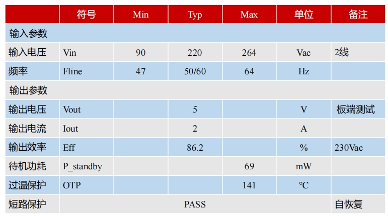 在不同輸入電壓下,S7134B芯片的待機(jī)功耗均低于75mW,滿(mǎn)足六級(jí)能效的待機(jī)功耗要求。具體數(shù)據(jù)如下表所示: