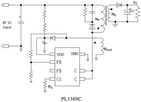 PL3369C憑借更低功耗、更高精度、更強保護及封裝兼容性,成為DP2525F的無縫替代選擇。其原邊控制架構不僅簡化了設計流程,還提升了系統可靠性,尤其適合對成本敏感且需快速量產的消費電子市場。內部框架圖如下所示