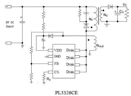 內(nèi)置高集成度功率MOSFET:PL3326CE內(nèi)部集成了高壓功率MOSFET,減少了外部元件數(shù)量,降低了PCB面積和系統(tǒng)成本。