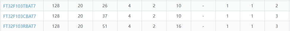 型號:FT32F113C8AT7/FT32F103C8AT7, FT32F103R8AT7/FT32F113R8AT7, FT32F113V8AT7