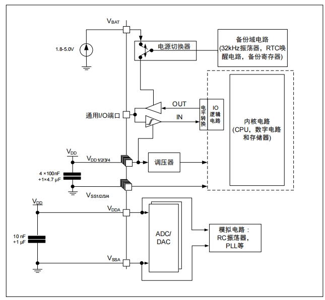 低功耗模式:睡眠、停止、待機(jī)模式。