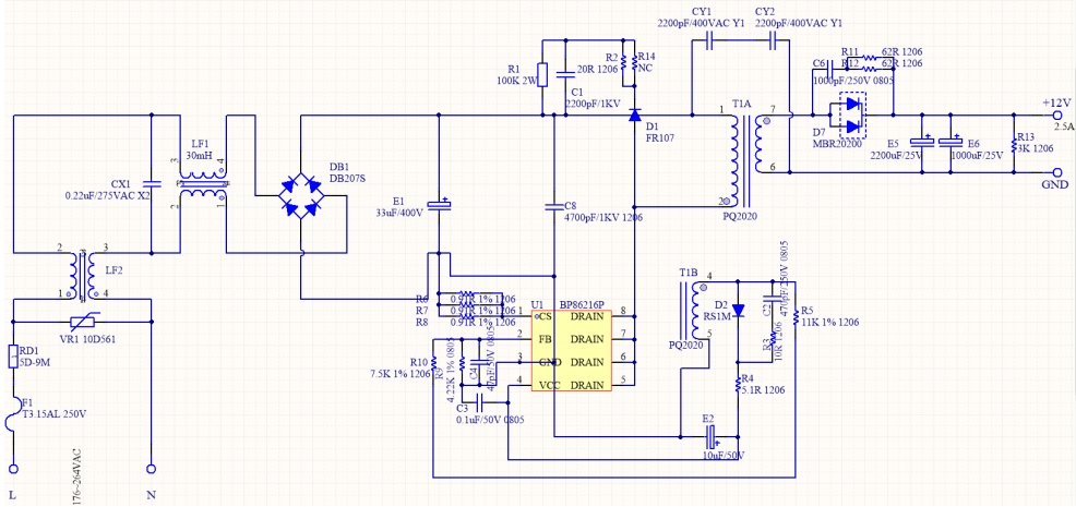 在現(xiàn)代家用電器市場(chǎng)中,電源適配器的效率和穩(wěn)定性至關(guān)重要。今天,我們將深入剖析一款基于 BP86216P 的 12V2.5A 電源方案,其實(shí)測(cè)效率超過 85%,堪稱 30W 功率段的“小鋼炮”。