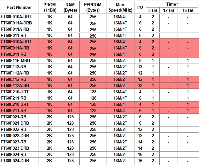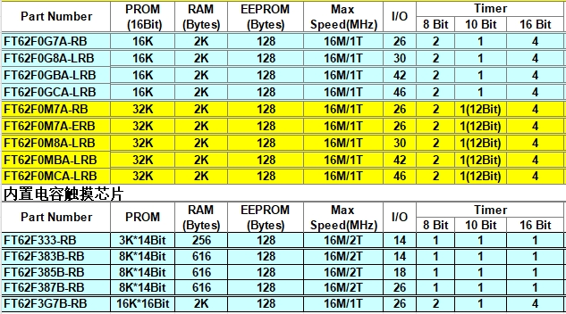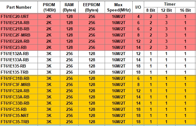 FMD 8位MCU采用清晰的"FT6x"命名體系,按性能與資源劃分為四大陣營: