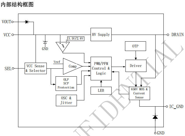 特色650 V 功率管 + 續流二極管 + 采樣電阻 全內置