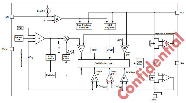 VIN OVP 44V/42V(滯回)—— 抑制汽車(chē)負(fù)載跳變尖峰