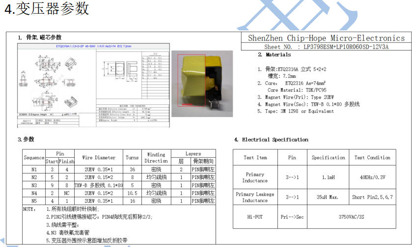 變壓器參數(ETQ2316A)