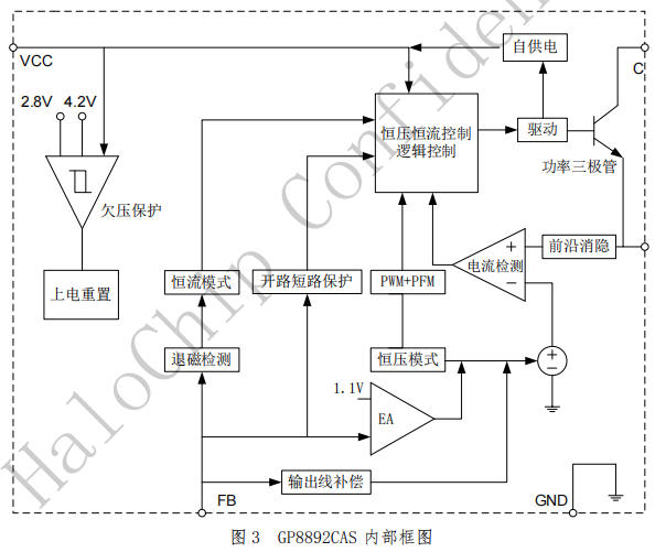GP8892CAS是華眾芯微推出的一款自供電原邊反饋(PSR)控制芯片,主打極致精簡的外圍設計,目標替代傳統需要輔助繞組供電的PSR方案(如LP3773CH等)。其最大特色在于: