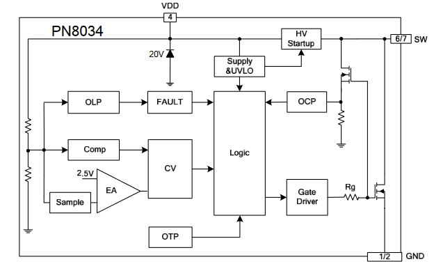 PN8034NSC-T1芯朋微 DIP7封裝 寬輸出范圍非隔離交直流轉(zhuǎn)換芯片
