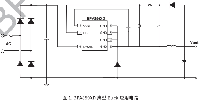BPA8505D 系列芯片是一款高性能、高集成度、低待機(jī)功耗的開關(guān)電源驅(qū)動芯片,適用于全電壓 85~265VAC 輸入的Buck、Buck-Boost、 Flyback 等變換器拓?fù)鋺?yīng)用。 BPA8505D 系列芯片內(nèi)部集成了 650V 高壓 MOSFET、高壓啟動和自供電電路、電流采樣電路,以及采用先進(jìn)的控制技術(shù),無需外部環(huán)路補(bǔ)償即可實(shí)現(xiàn)優(yōu)異的恒壓輸出特性,極大地減少了外圍器件數(shù)量,節(jié)省了系統(tǒng)成本和體積,同時提高了可靠性。