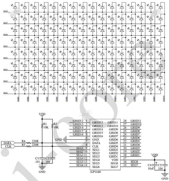 AIP1640中微愛(ài)芯SOP28封裝8段16位LED驅(qū)動(dòng)控制專(zhuān)用電路芯片