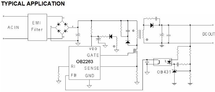 OB2263的啟動電流低至3uA,工作電流約為1.4mA,有效降低了系統的損耗,提高了系統的效率。