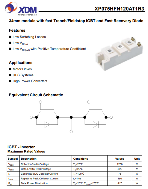 XP075HFN120AT1R3 芯達茂 國產IGBT 功率模塊 75A 1200V