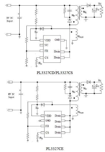 盡管兩款芯片都適用于小于18W的AC/DC反激式開關電源,但它們的封裝差異可能會影響它們在特定應用中的適用性。例如,PL3327CE的SOP8封裝可能更適合于對空間要求較高的便攜式設備,如手機充電器和數(shù)碼相機充電器。而PL3327CD的DIP7封裝可能更適合于對成本敏感且空間要求不那么嚴格的應用,如一些小型電源適配器。